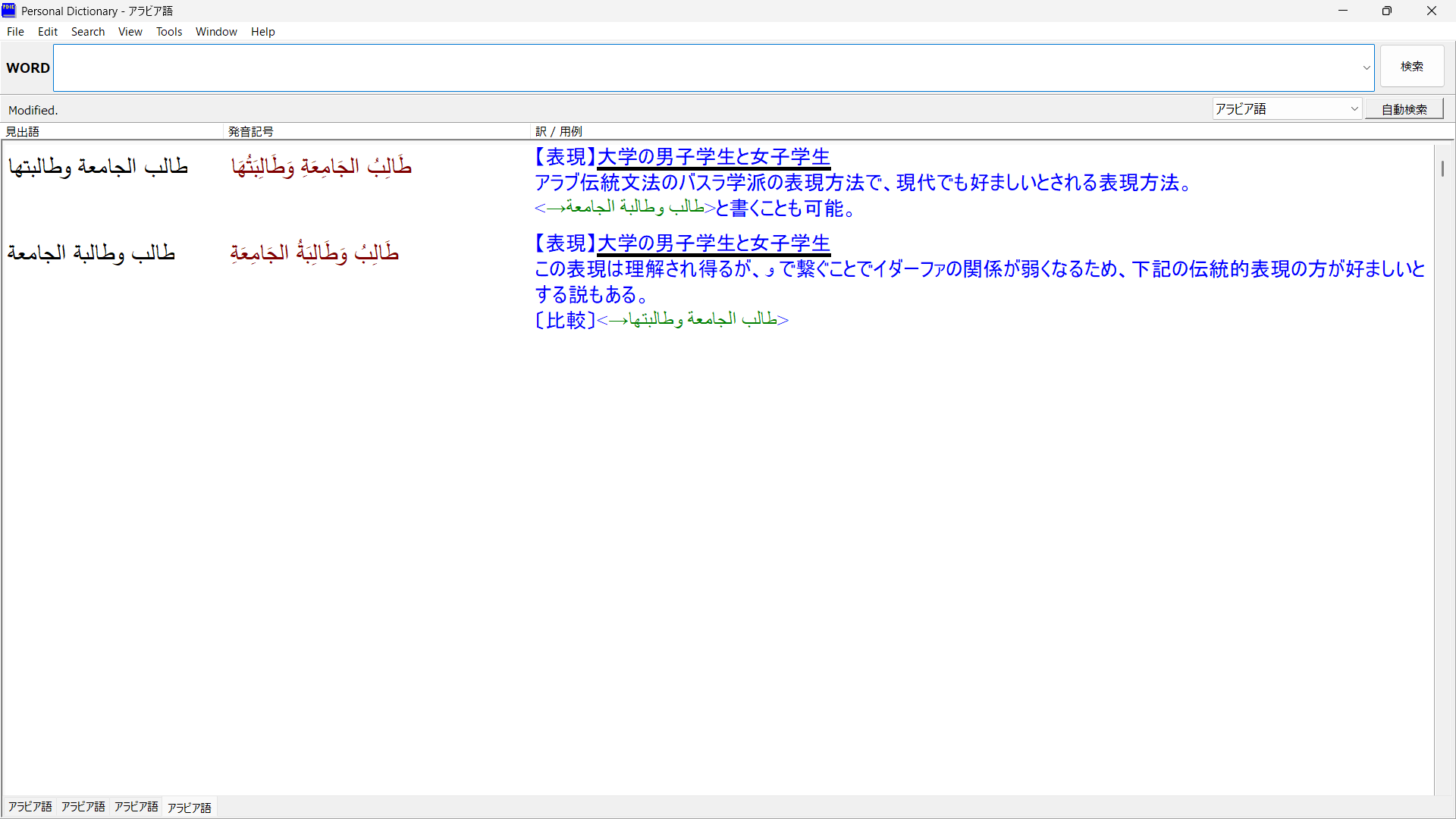 「طالب الجامعة وطالبتها」「طالب وطالبة الجامعة」大学の男子学生と女子学生(アラビア語) | アラビア語-日本語電子辞書データ